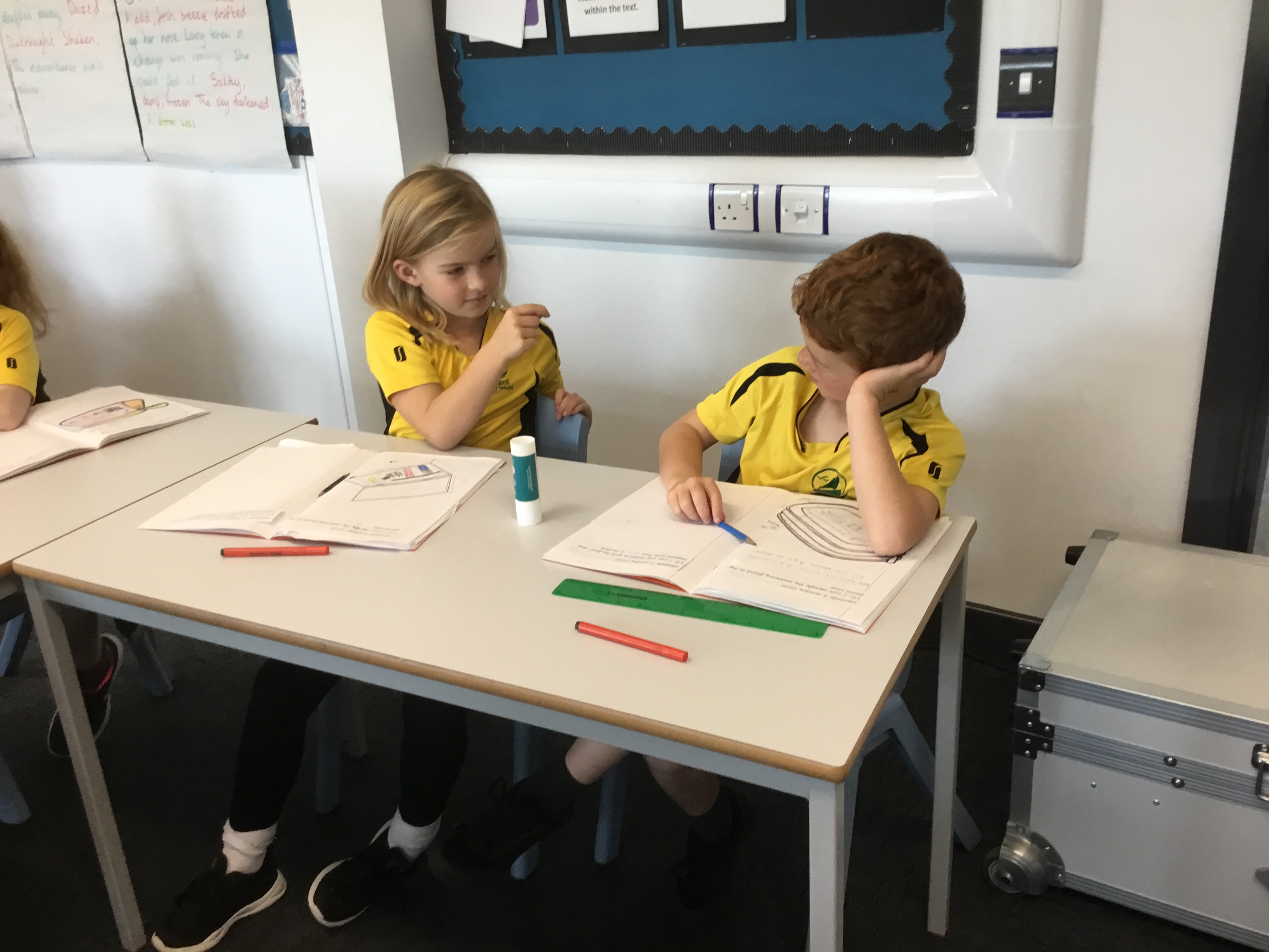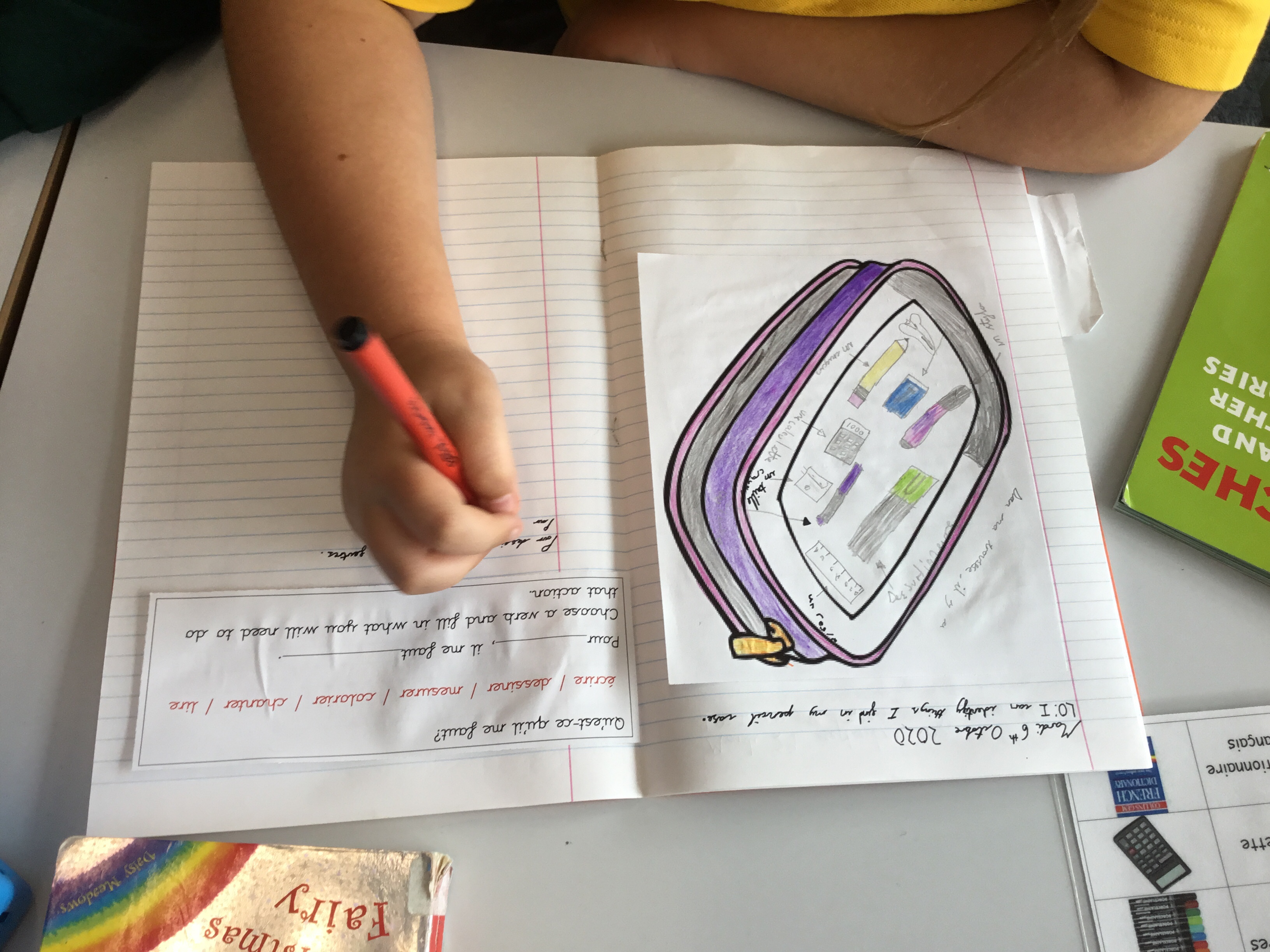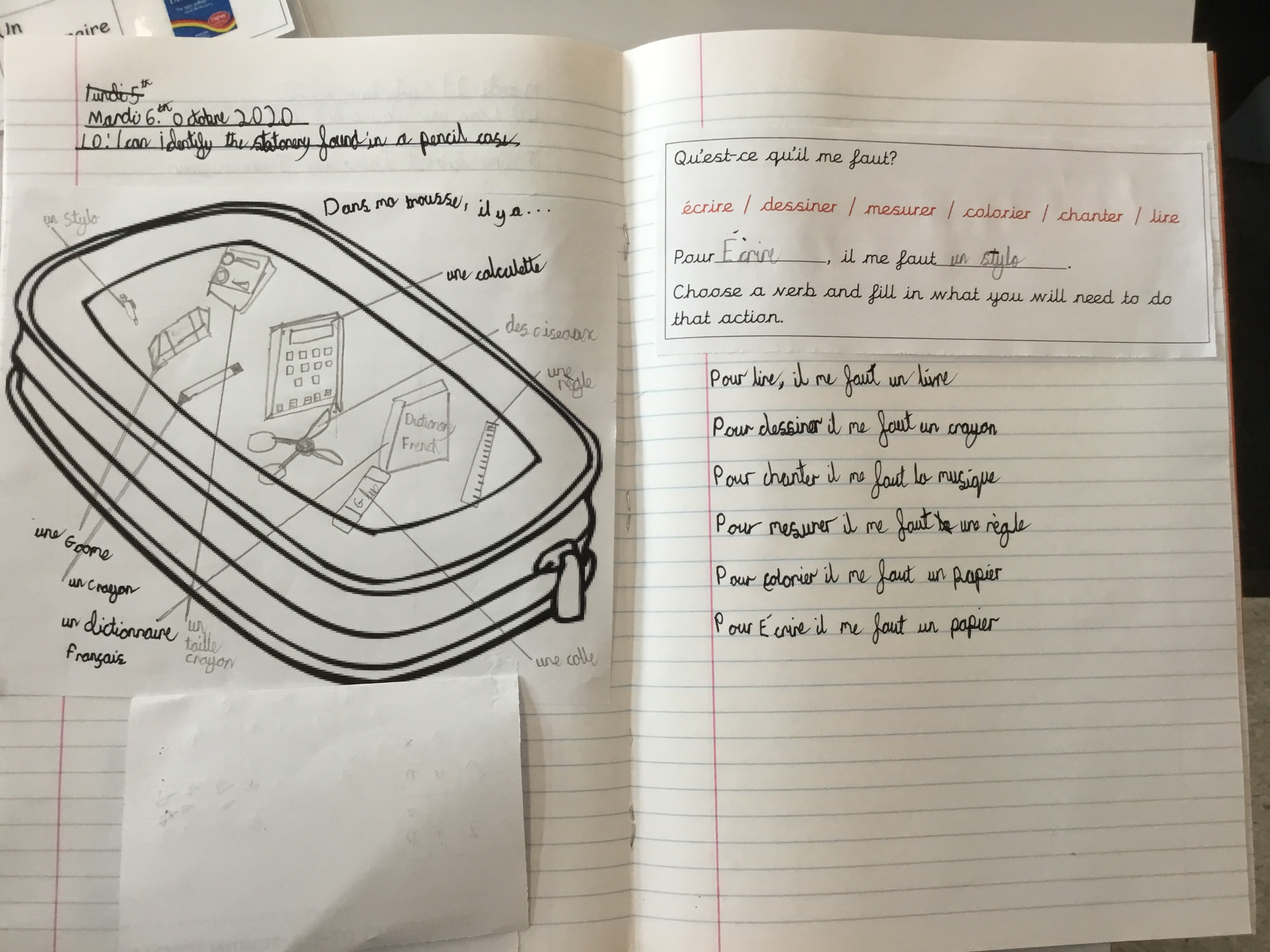 The children have been learning the vocabulary for the different items found in their pencil cases. They practised asking each other what they would need in order to write or draw.