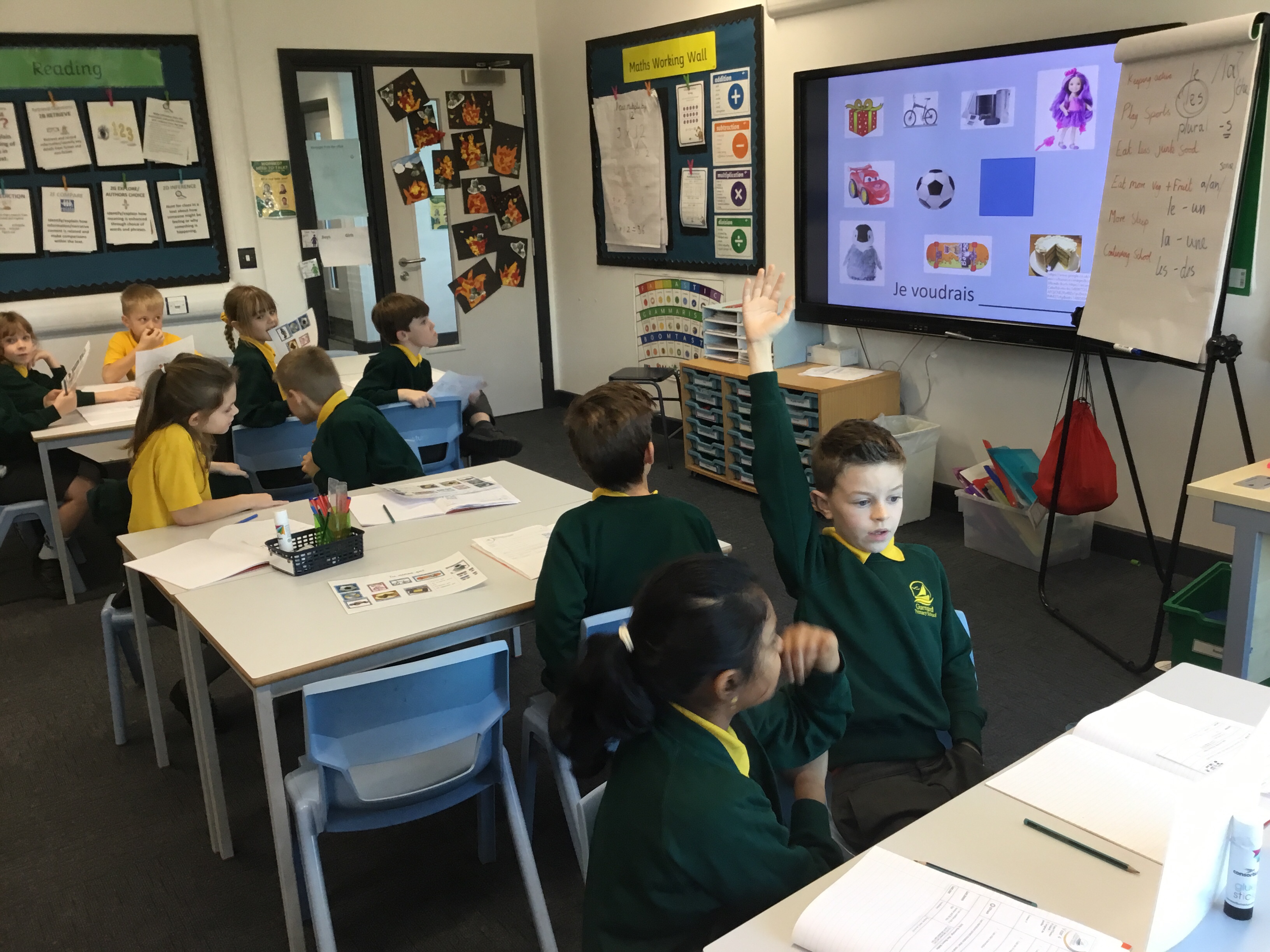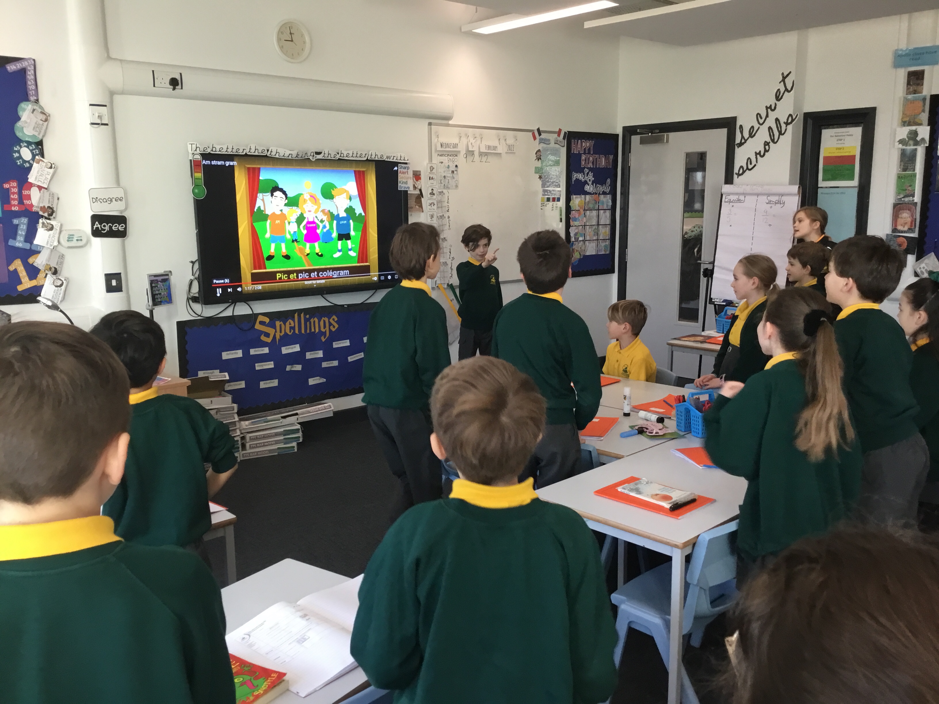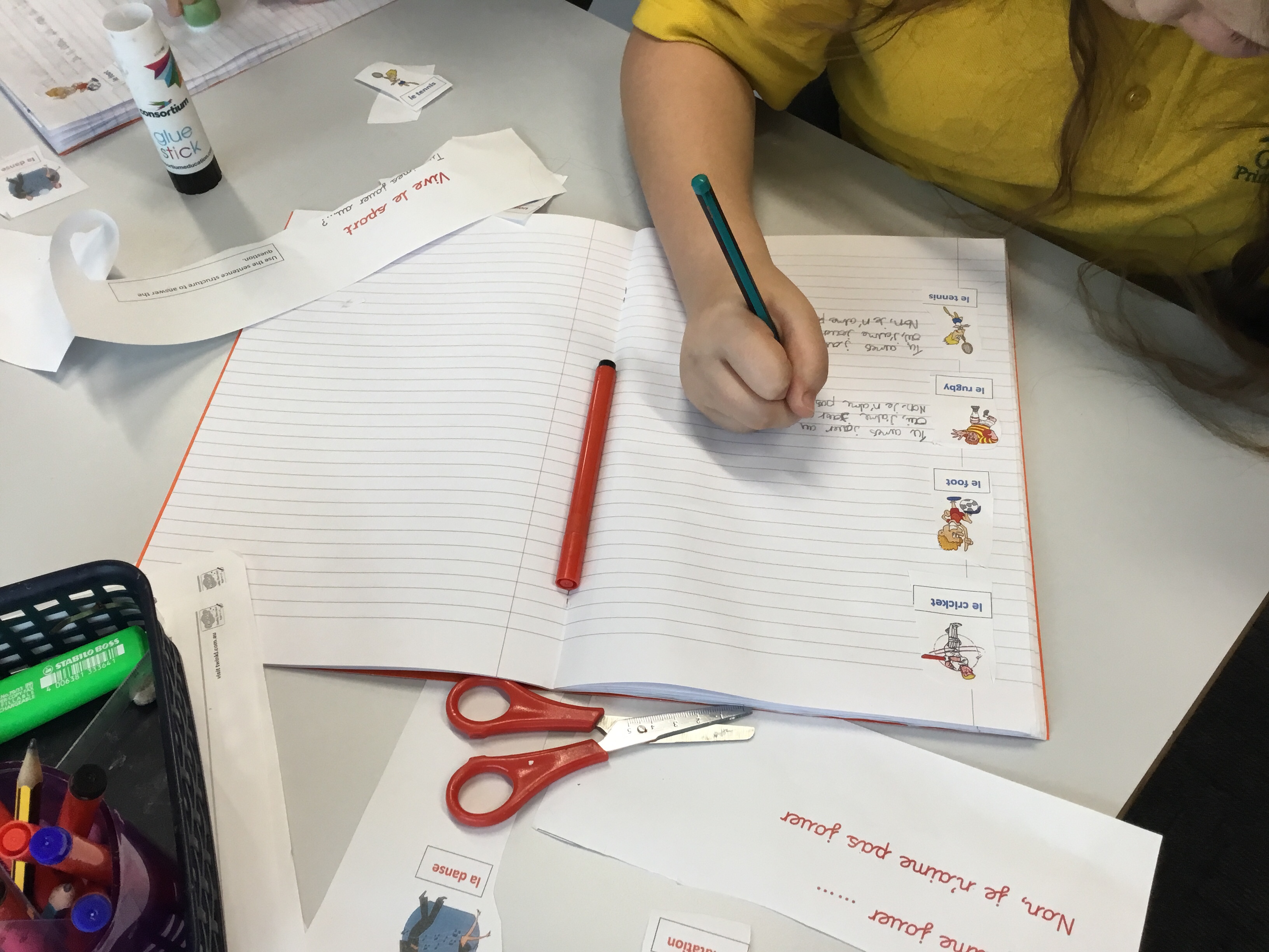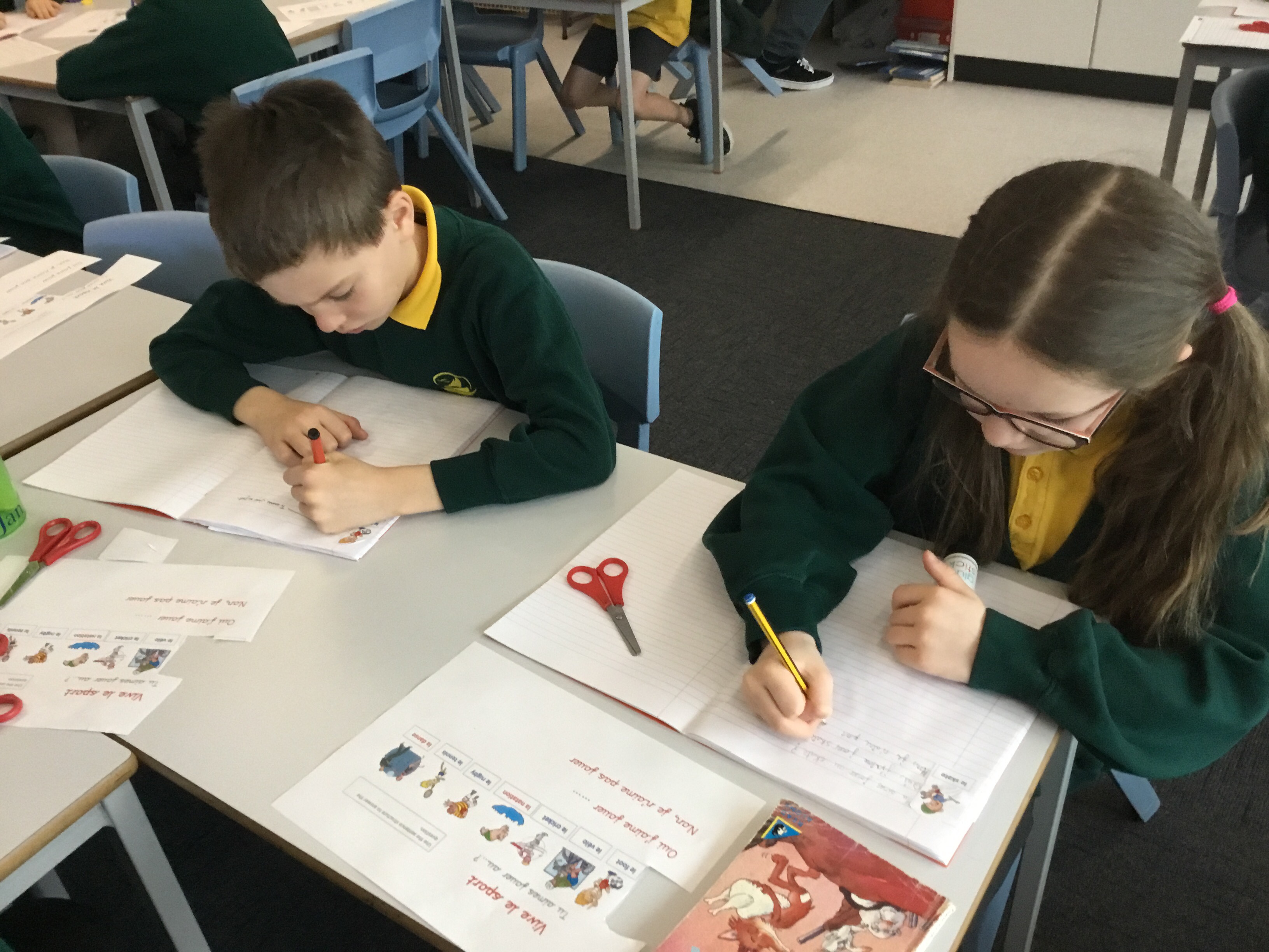 Year 4 started a new topic, Vive le sport. They were introduced to sports vocabulary. They revised using J’aime and Je n’aime pas with different verbs from the back to school topic. They mimed the actions. They then used a sentence structure to ask each other: Do you like playing tennis? And other sports. Which they then answered. After practising asking and answering the questions, they then wrote them into their books.