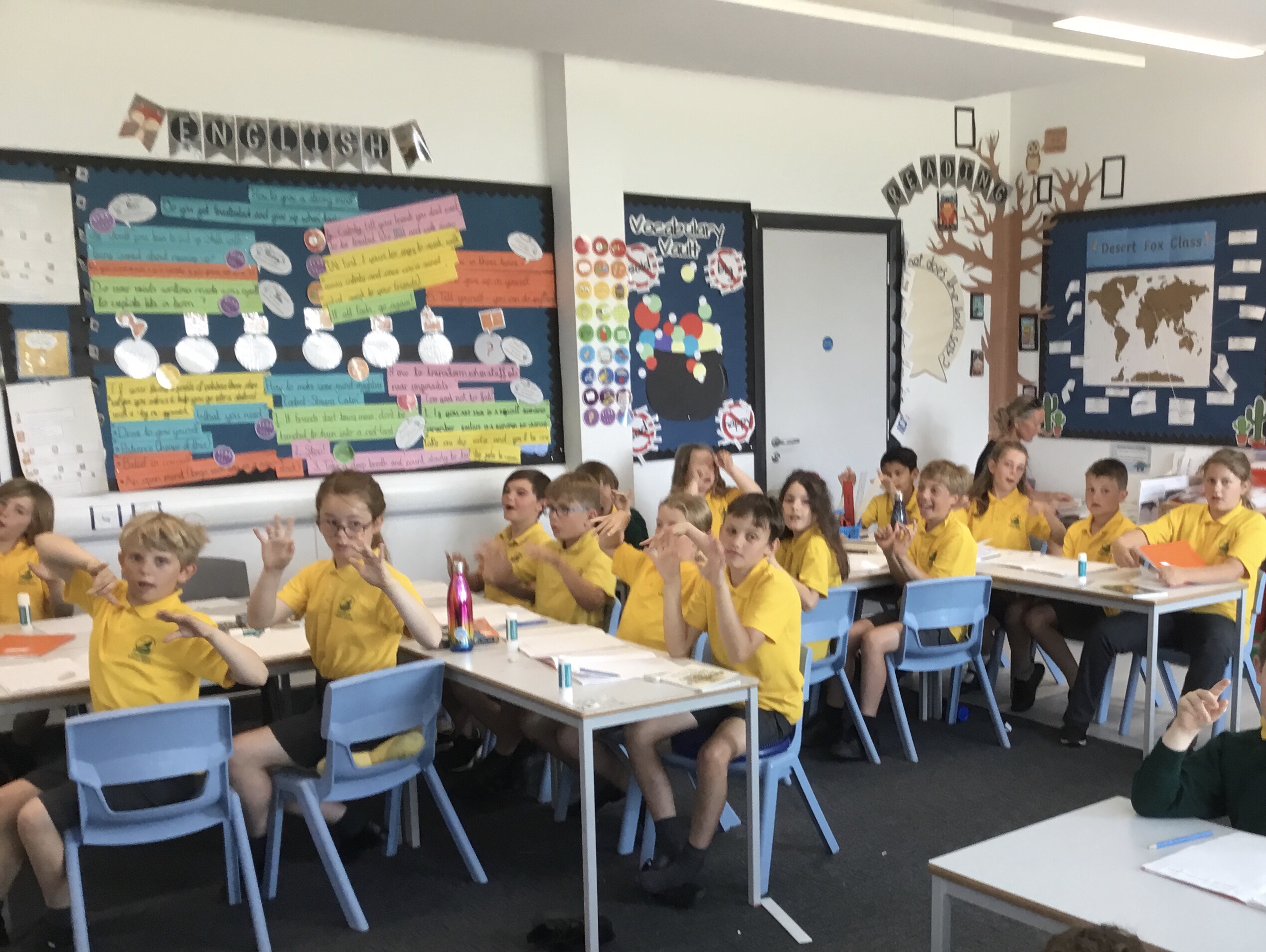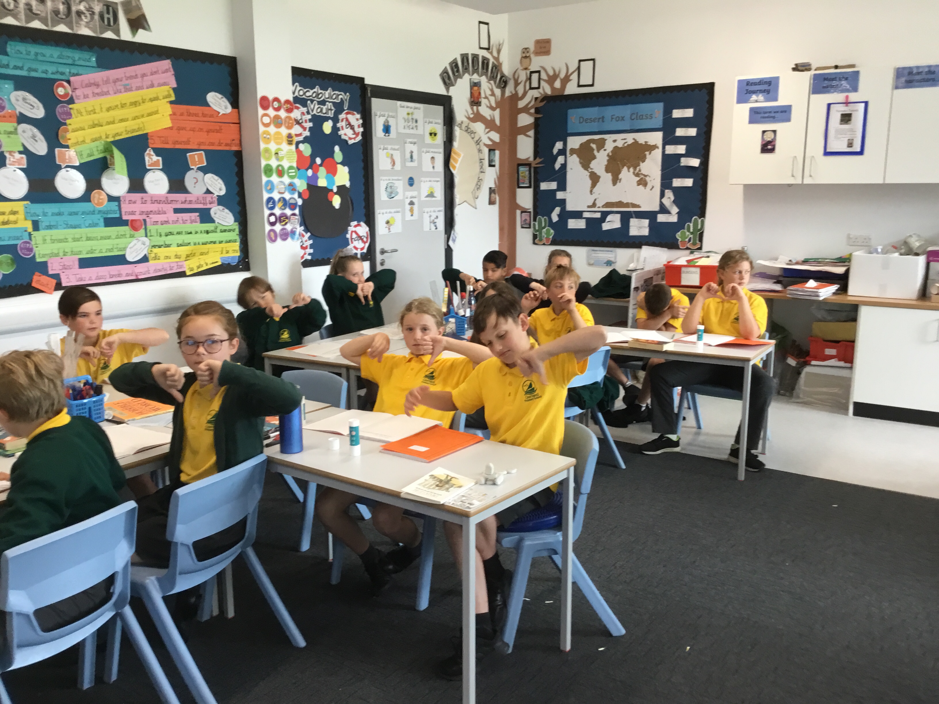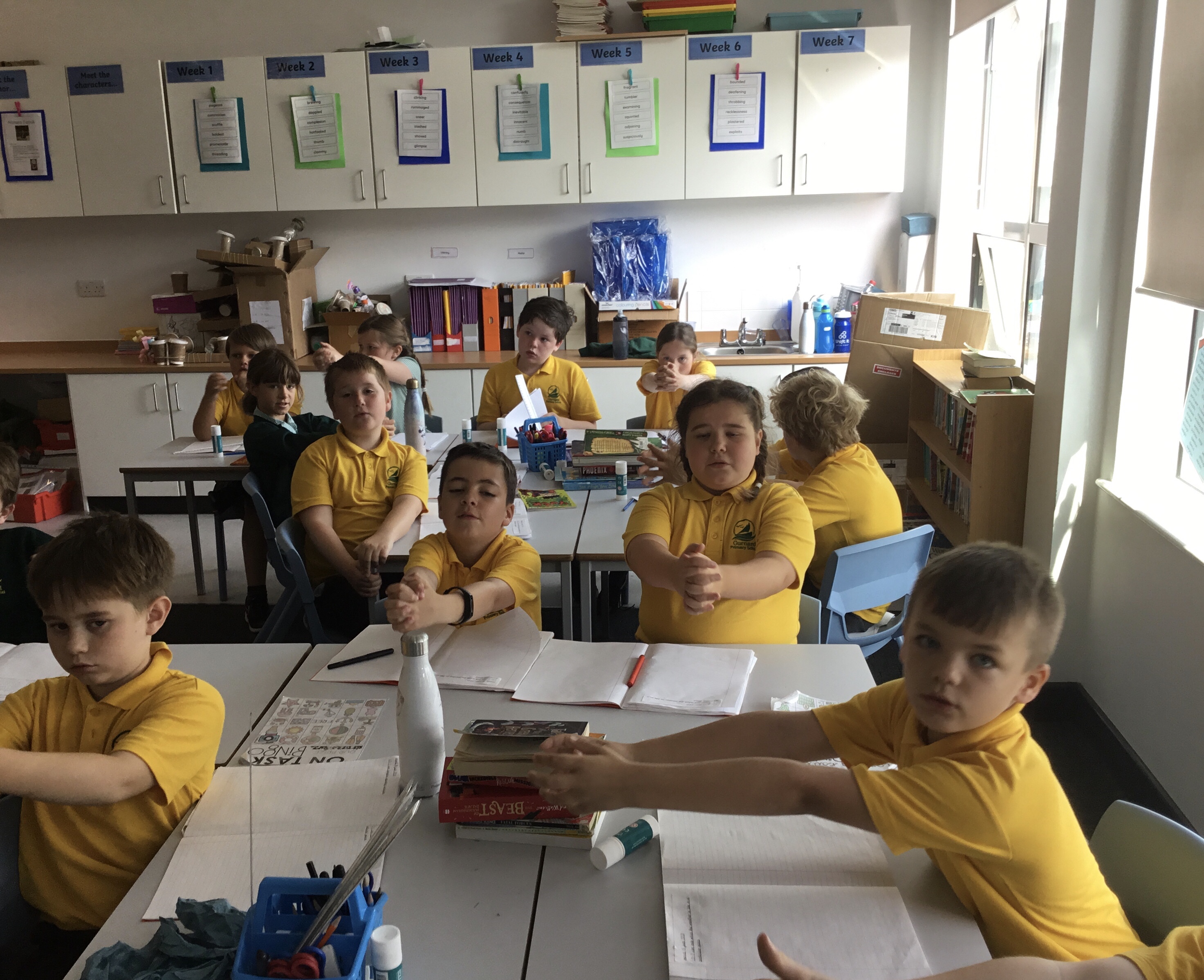 Year 4 practised miming the different types of weather and learnt a weather song.. They completed a sheet labelling the different types of weather. They then looked at rhyming words and silent letters. The children had to recognise sounds that rhymed in order to write their own weather poem.
