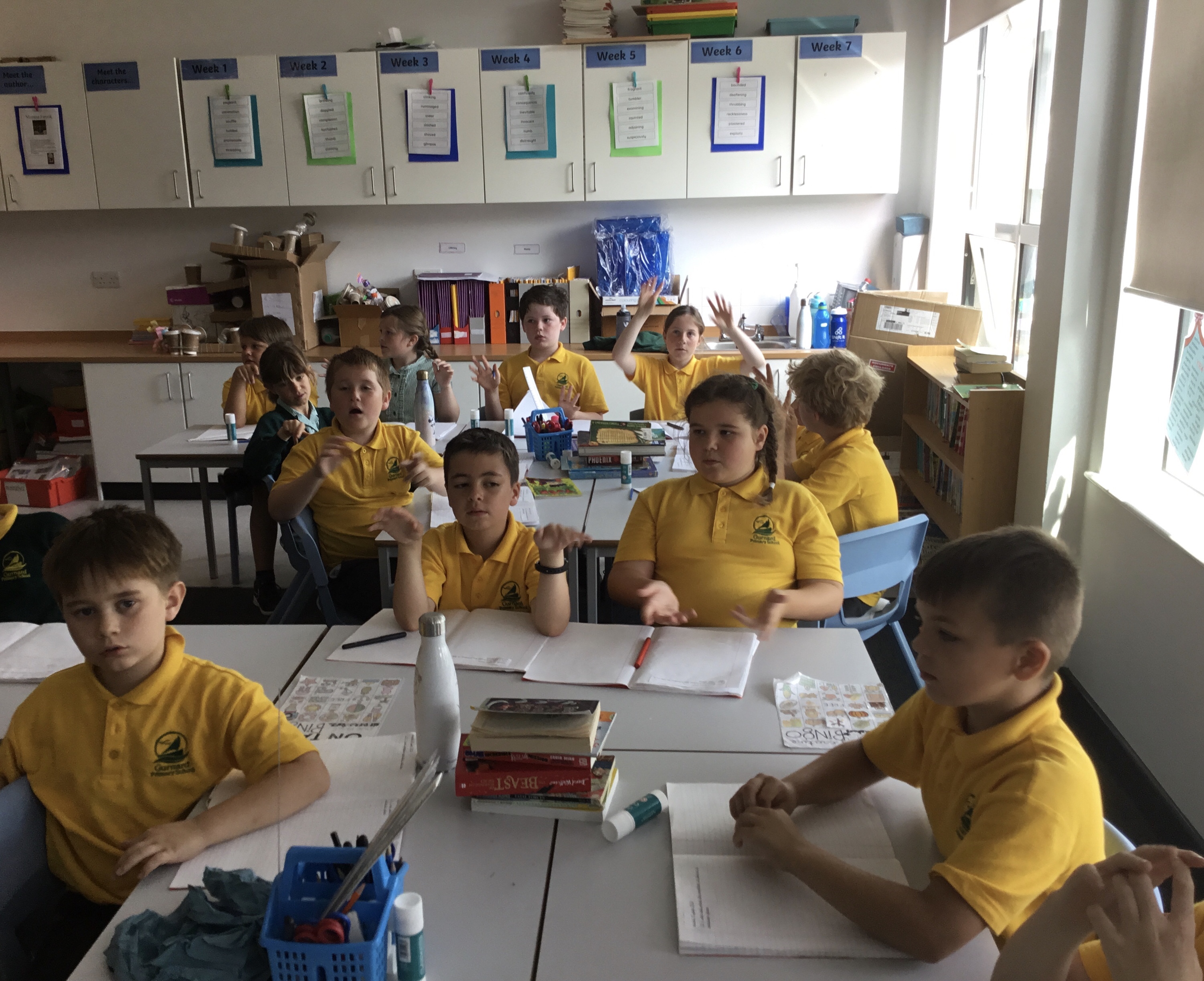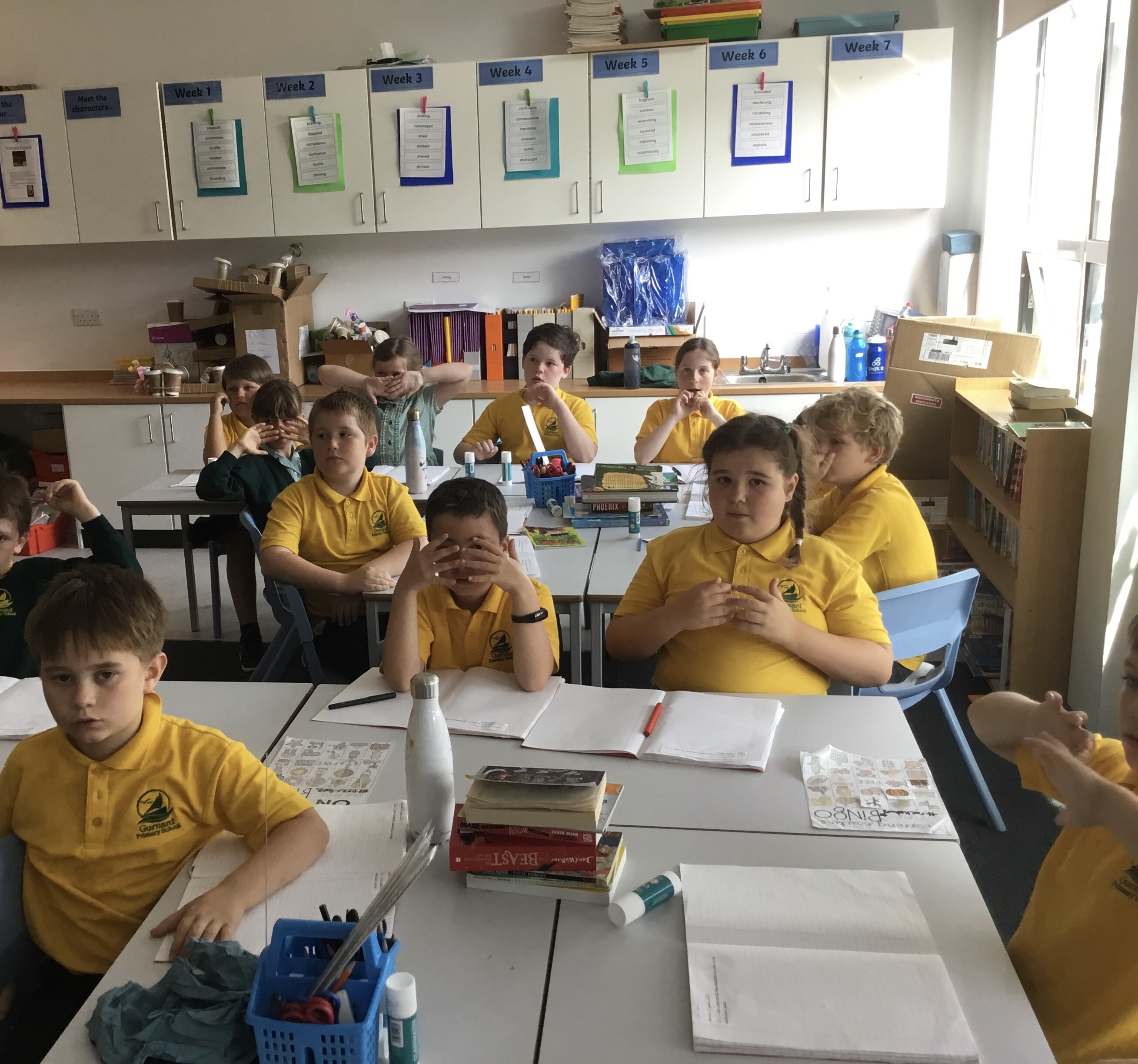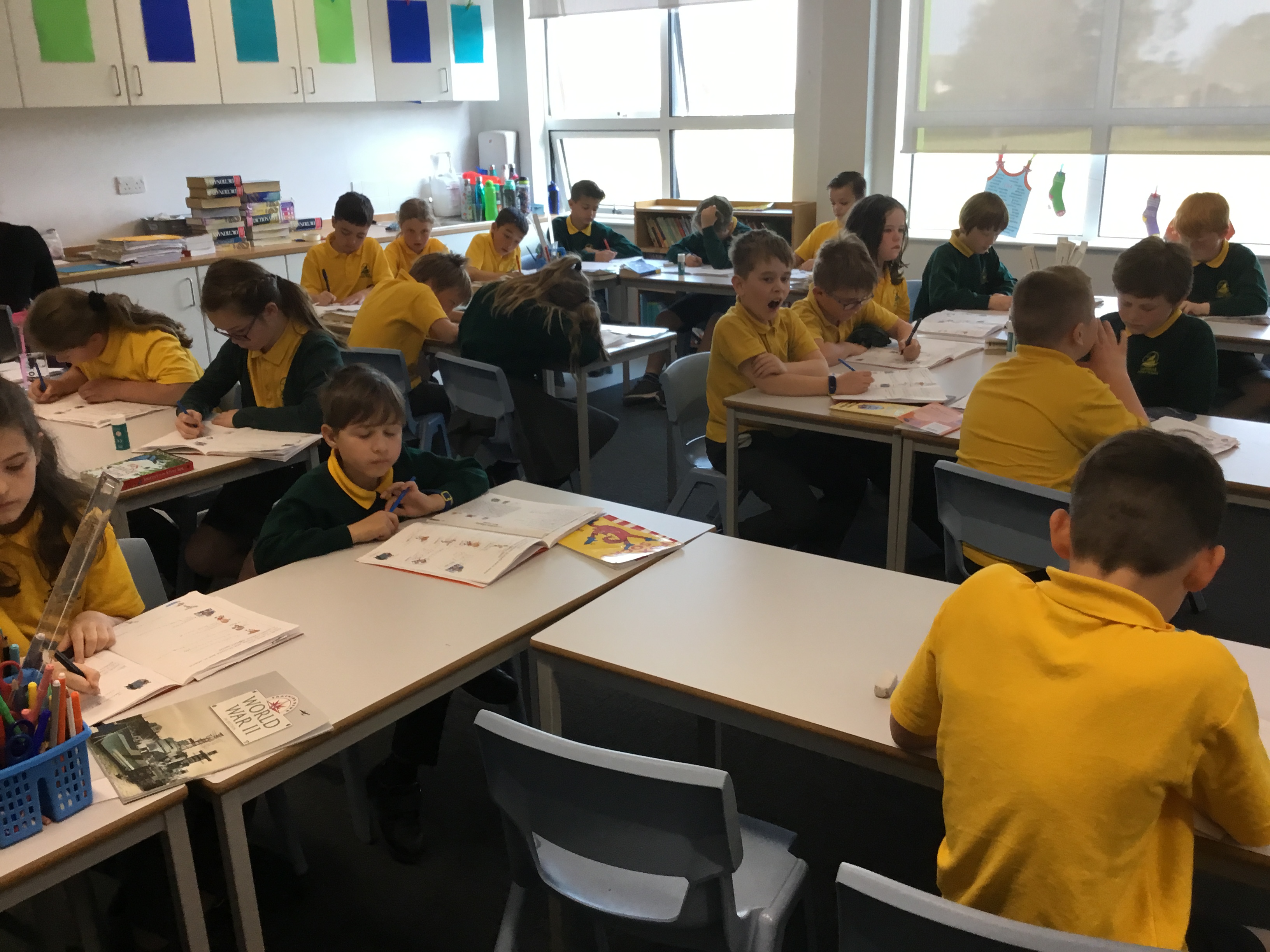 Year 4 practised miming the different types of weather and learnt a weather song.. They completed a sheet labelling the different types of weather. They then looked at rhyming words and silent letters. The children had to recognise sounds that rhymed in order to write their own weather poem.