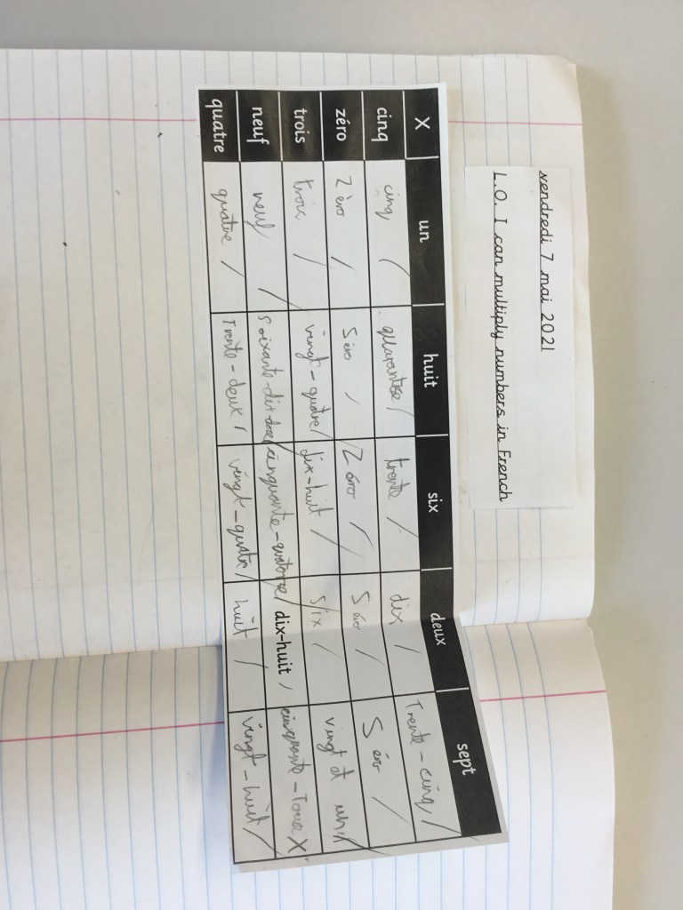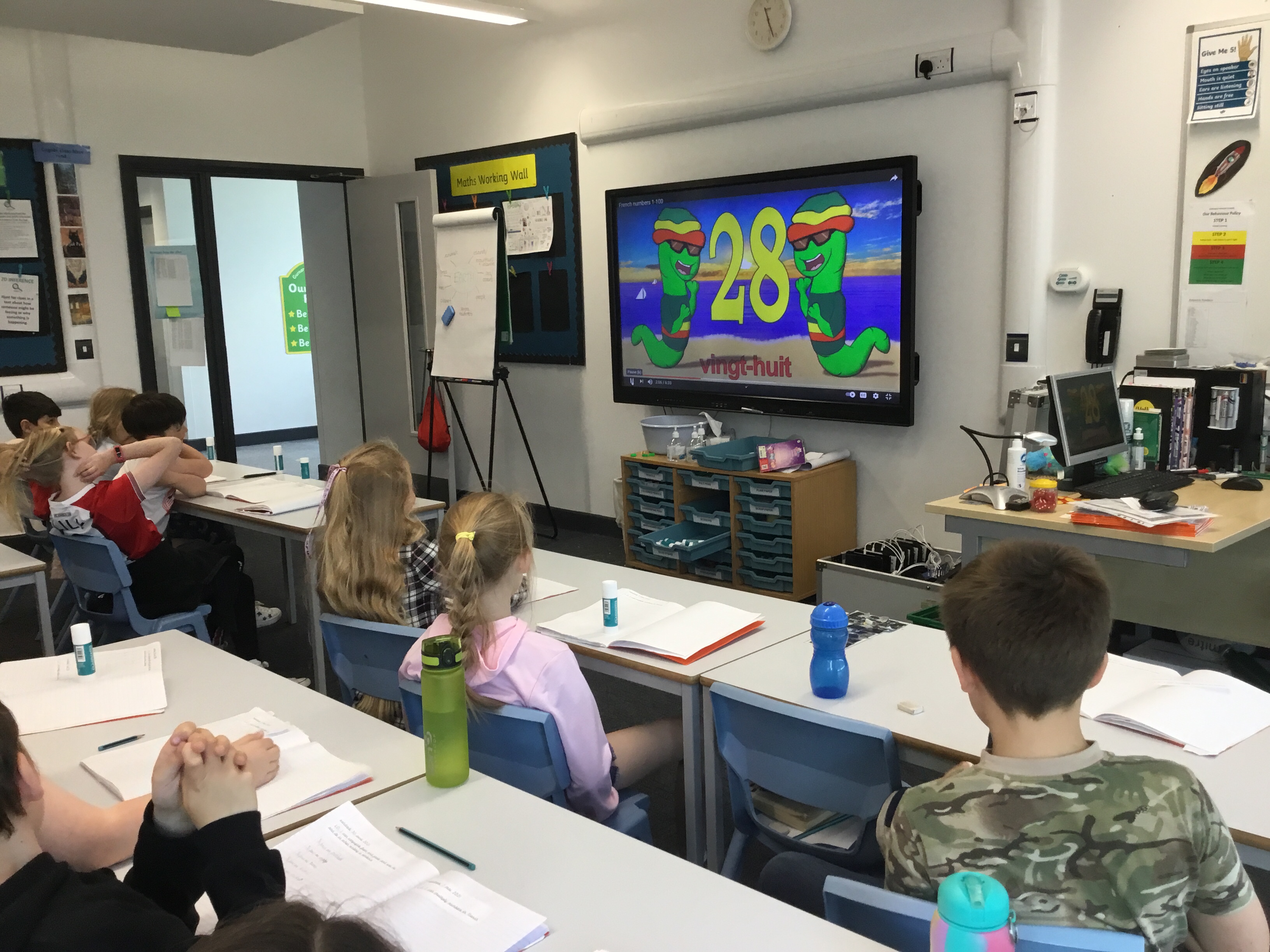 The children revised the numbers taught previously,then learnt the remainder of numbers to 100. They sang a song to practise their numbers, did a short quiz then learnt some maths vocabulary in French before using their knowledge of numbers to practise their timestables.